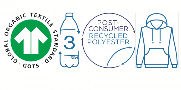 Thanks to the 3-ply brushed fleece Made from LSF Low Shrinkage Fleece, these sweatshirts are durable and wash-stable. Most importantly, to guarantee environmentally friendly production, all Organic sweatshirts are made from 85% organic cotton and 15% recycled polyester . The GOTS (Global Organic Textile Standard) certificate is issued by Ecocert Greenlife. This is the strictest certification for organic fiber textiles. It tracks the entire production chain, from the harvesting of raw materials to environmentally and socially responsible manufacturing. It takes approximately three plastic bottles to make one Kariban Organic Colours sweatshirt.