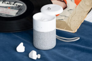 The KANZEN audio pack from Akashi features a wireless Bluetooth speaker with integrated earphones, offering an impressive 70 hours of battery life for the earphones. Made from recycled materials, this set combines exceptional audio performance with environmental responsibility, making it an eco-friendly and stylish gift for the holiday season.