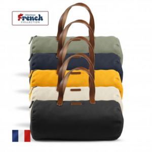 BEWEAR offers a duffel bag (CGB2260) made in France from 360 g/m² cotton twill and genuine leather. This bag combines elegance and responsibility with Citizen Green certification, highlighting a genuine CSR policy. It is a sustainable and high-quality choice for your corporate gifting needs, offering both style and ethical considerations.