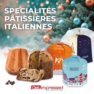 Get Impressed presents Panettone, a high-quality Italian confectionery product, ideal for conveying a delicious promotional message. With fully customizable patented packaging and a soft dough studded with chocolate chips, Panettone stands out for its delicate texture and refined taste. It's a sweet choice that combines pleasure with effective communication.