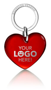 The heart-shaped keychain is an elegant promotional gift, ideal for expressing gratitude, care, or for commemorating events like Christmas or Valentine's Day. Available in light pink or transparent red, this keychain can be personalized with a logo, optionally in silver, for an even more refined effect.