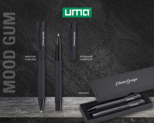 The UMA MOOD GUM is a pen distinguished by its refined design and soft-touch matte surface, offering a smooth and pleasant writing experience. Perfect for the holidays, this model can be personalized with laser engraving and can be paired with a matching rollerball pen for an elegant writing duo. Delivered in a sophisticated case, it's an ideal Christmas gift.