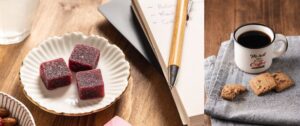 Fruit jellies and shortbread are individually wrapped in small transparent compostable cellulose bags, which can be marked in one color, and all the treats are available in the four-color printed and 100% customizable packaging already offered for the chocolate squares.