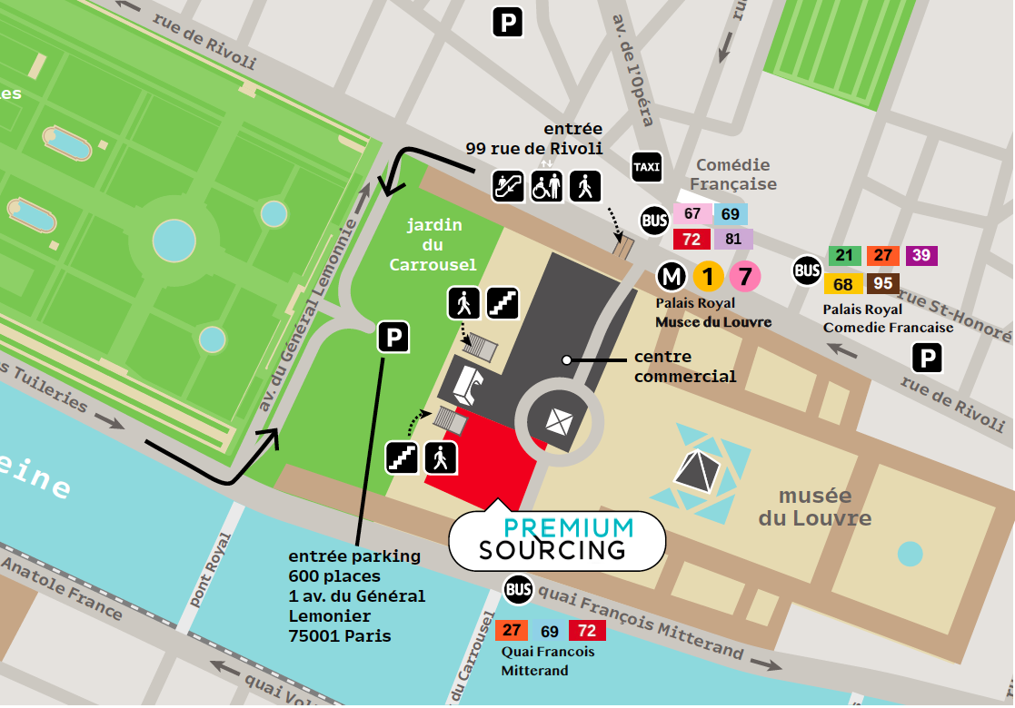 The “Parc Carrousel Louvre” is accessible via Avenue du Général Lemonnier, 75001 Paris.