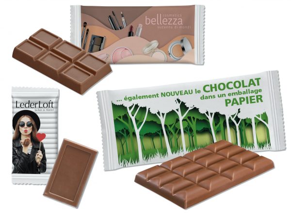 Un chocolat tendrement fondant, issu du commerce équitable et emballé dans un support papier vertueux ? C’est désormais possible grâce à Kalfany Süße Werbung. Nouveauté 2022 : le fabricant propose en effet un chocolat au lait conditionné dans un emballage personnalisable en papier certifié FSC à plus de 99 %, sans pelliculage, conforme aux normes alimentaires, et qui plus est recyclable à 100 % ! Trois formats au choix : la tablette Super Maxi, la tablette Maxi et la mignonnette Midi. Un régal, avec une démarche durable !