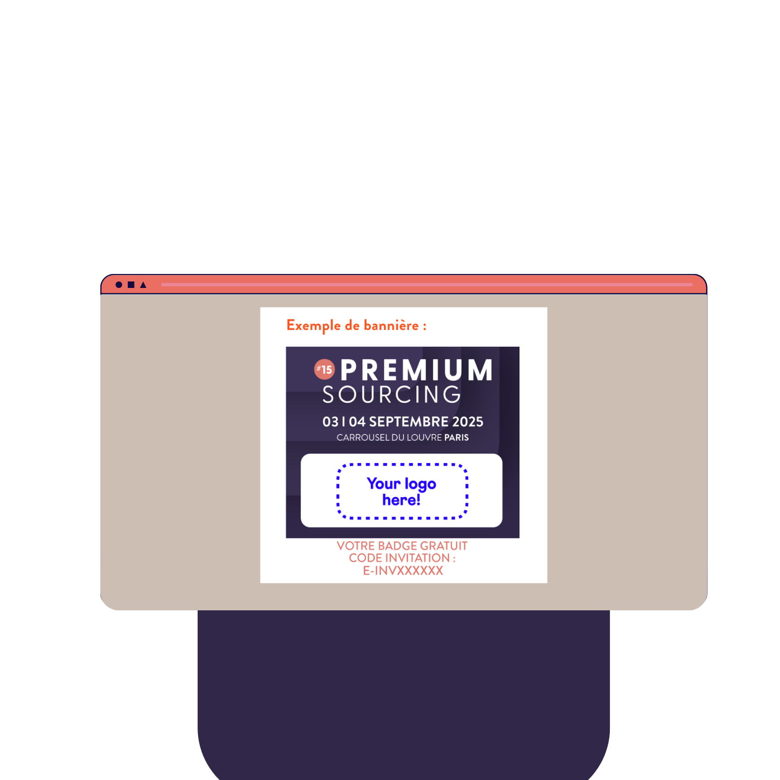 Personnalisez vos bannières avec votre logo et votre code invitation pour annoncer votre participation au salon sur vos différents supports de communication (communiqué de presse, site internet, signature email, réseaux sociaux…).